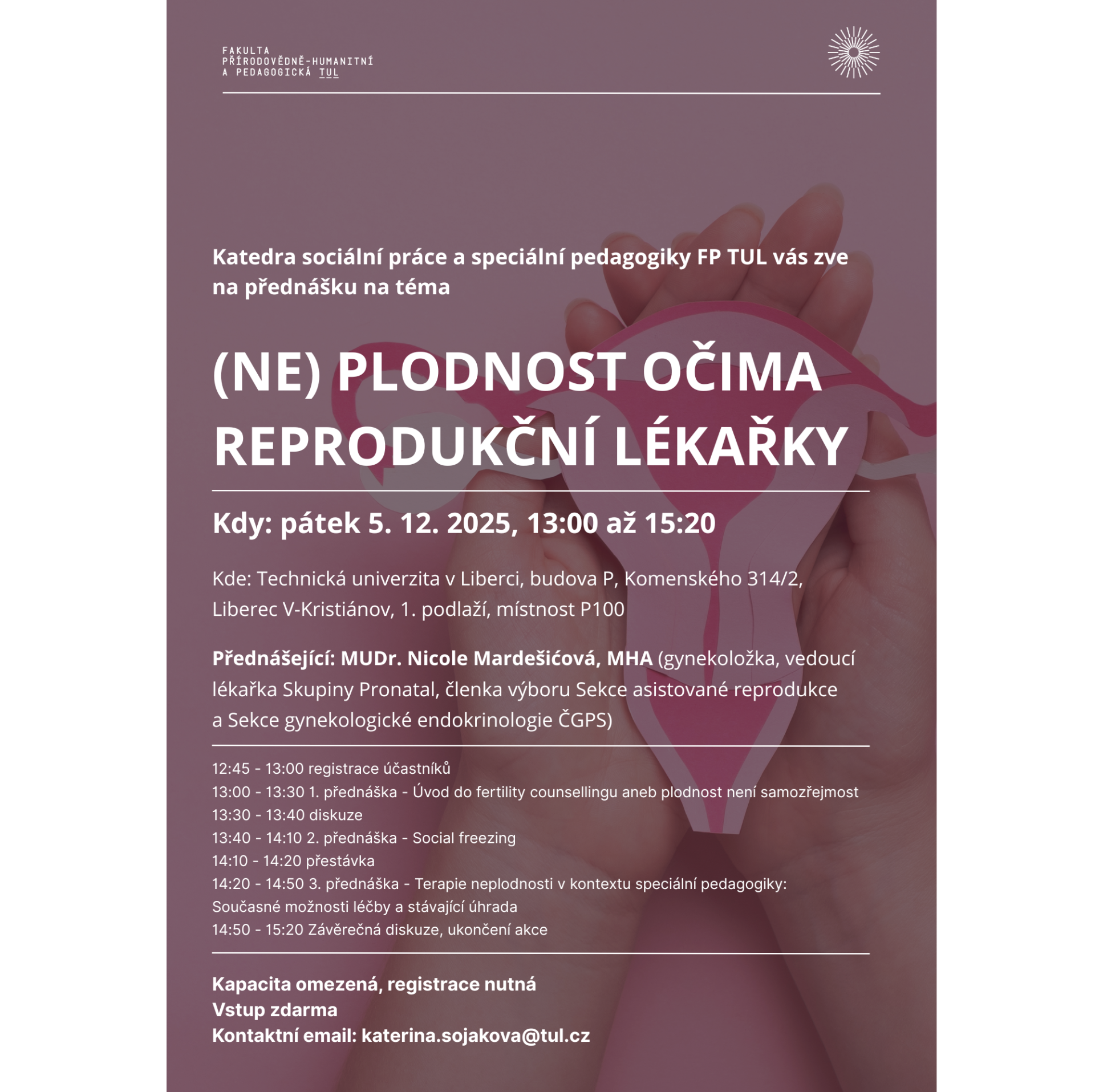 Katedra sociální práce a speciální pedagogiky FP TUL vás zve na přednášku na téma (Ne)plodnost očima reprodukční lékařky.