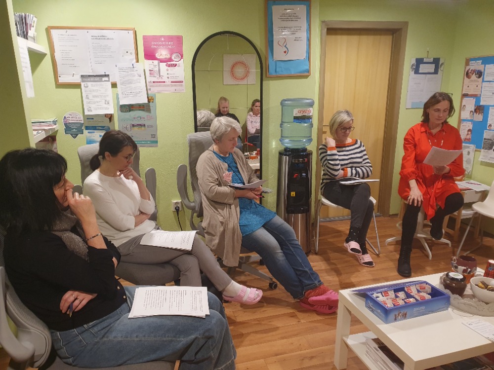 Sešli jsme se v počtu 11 žen. Setkání vedla opět velmi humornou formou zdravotní sestřička Dana Vacková a přednášejícím hostem byla fyzioterapeutka Vendula Jörgová. Atmosféra byla veselá a vtipná. Paní Jörgová nám předala spoustu zajímavých tipů, jak zábavnou formou zapracovat na posílení pánevního dna.